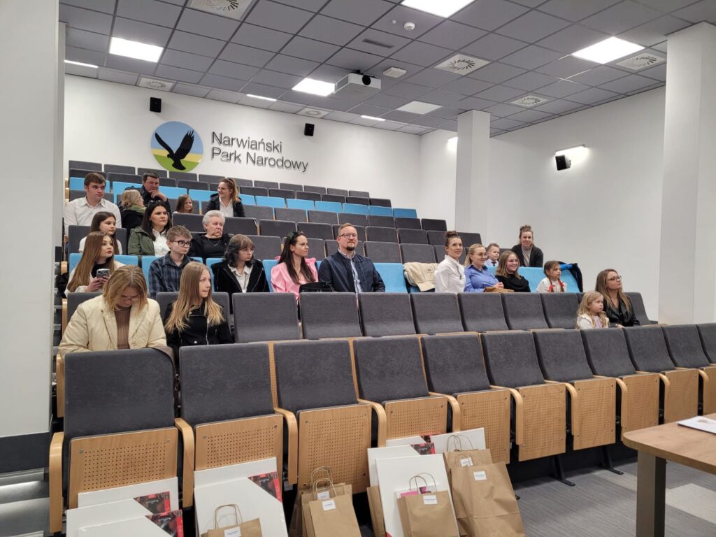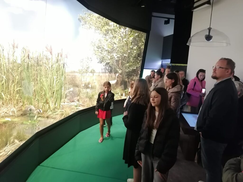 Uczestnicy mieli również okazję poszerzyć swoją wiedzę przyrodniczą – obejrzeli film o genezie powstania doliny Narwi, zapoznali się z unikalnym systemem rzeki anastomozującej (wielokorytowej) dzięki multimedialnej makiecie, a także podziwiali duże akwarium z rybami zamieszkującymi wody Narwi.