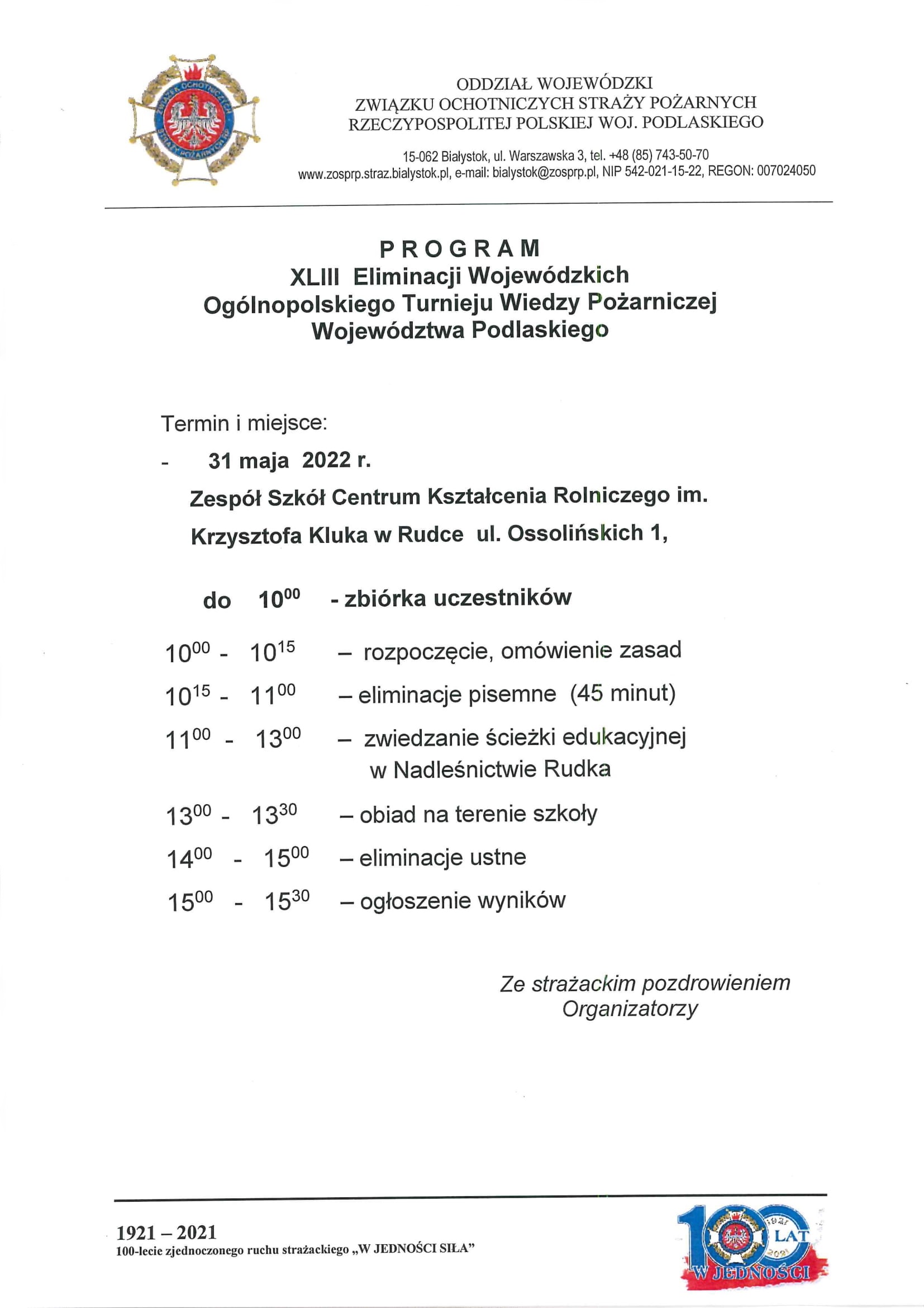 Tegoroczne Eliminacje Województwa Podlaskiego odbędą się 31 maja (wtorek) w Zespole Szkół Centrum Kształcenia Rolniczego im. Krzysztofa Kluka w Rudce.