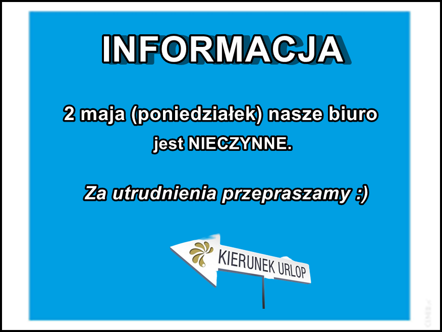 Informujemy, że nasze biuro 2 maja (poniedziałek) będzie nieczynne.