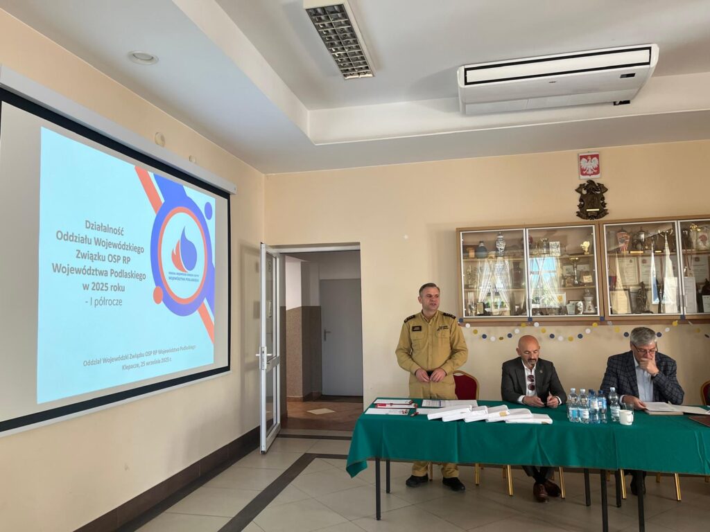 W dniu 25 września 2025 r. w Ochotniczej Straży Pożarnej w Klepaczach odbyło się Posiedzenie Prezydium Zarządu Oddziału Wojewódzkiego Związku OSP RP Województwa Podlaskiego oraz Wojewódzkiej Komisji Odznaczeń. W posiedzeniu uczestniczył Burmistrz Choroszczy Pan Robert Wardziński, Podlaski Komendant Wojewódzki Państwowej Straży Pożarnej w Białymstoku st. bryg. Janusz Kondrat, Przewodniczący Komisji Rewizyjnej Zarządu Oddziału Wojewódzkiego dh Marek Pabich oraz Koordynator Województwa Podlaskiego Programu Pierwszy Ratownik dh. Katarzyna Oświecińska.