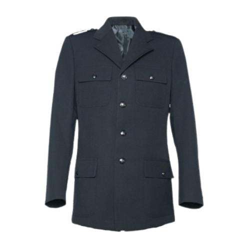 Mundur wykonany z tkaniny w kolorze ciemnogranatowym.