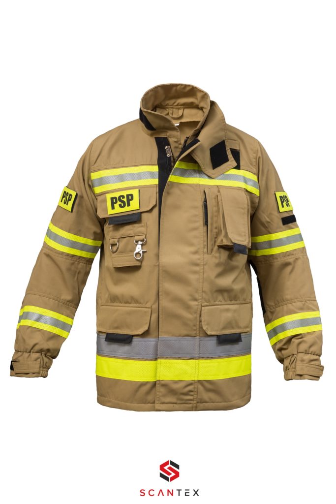 - Ubranie jednowarstwowe, wykonane z tkaniny aramidowej. Składa się z kurtki i spodni zgodnych z przepisami dotyczącymi umundurowania strażaków Państwowej Straży Pożarnej, tj. rozporządzenie ministra spraw wewnętrznych i administracji z dnia 29 września 2021 r. w sprawie umundurowania strażaków Państwowej Straży Pożarnej.