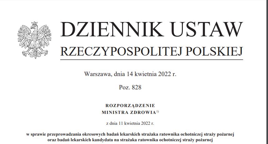 Ukazało się rozporządzenie Ministra Zdrowia w sprawie przeprowadzania okresowych badań lekarskich strażaka ratownika ochotniczej straży pożarnej oraz badań lekarskich kandydata na strażaka ratownika ochotniczej straży pożarnej.