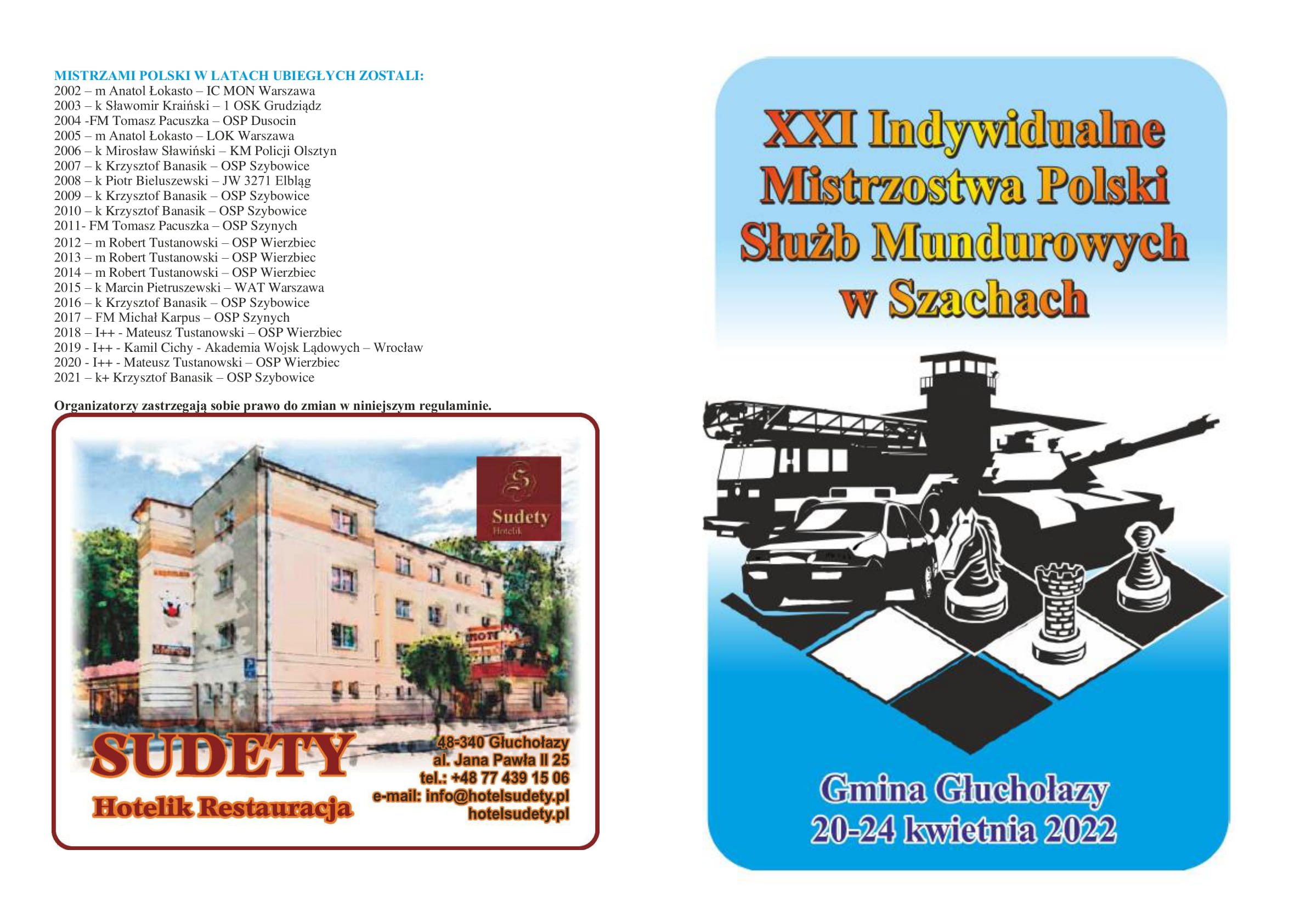 Opublikowano 2022-03-28 XXI Indywidualne Mistrzostwa Polski Służb Mundurowych w Szachach Nawigacja wpisuPoprzedni wpis: Zapraszamy do zakupówNastępny wpis: Ogólnopolski Strażacki Konkurs Plastyczny